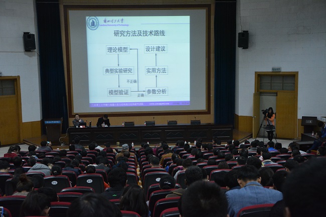 王文达教授的报告紧密结合当前热点研究问题,依托自己多年科学研究和工程技术等方面的研究成果和经验,从钢混组合结构的概念、钢混组合结构的优点、使用范围、受力性能、研究方法及研究现状等方面进行了详细的讲解和分析,并对所带团队取得成果进行了介绍。最后,王文达教授表示结构工程是一种艺术,希望土木学子认真学习、多做实践、多参与科研活动,也希望对组合结构感兴趣的师院土木学子能加入团队。