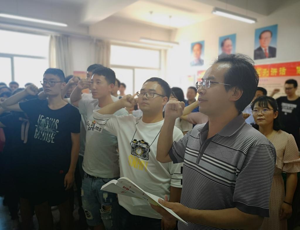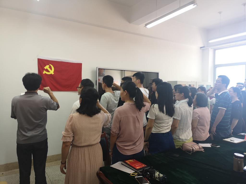 最后,张书记带领全体党员面向党旗进项庄严宣誓,向党组织表达了自身的想法与决心,不忘初心跟党走,在今后的工作中,坚定目标、严格要求自己,努力改正自己的不足。