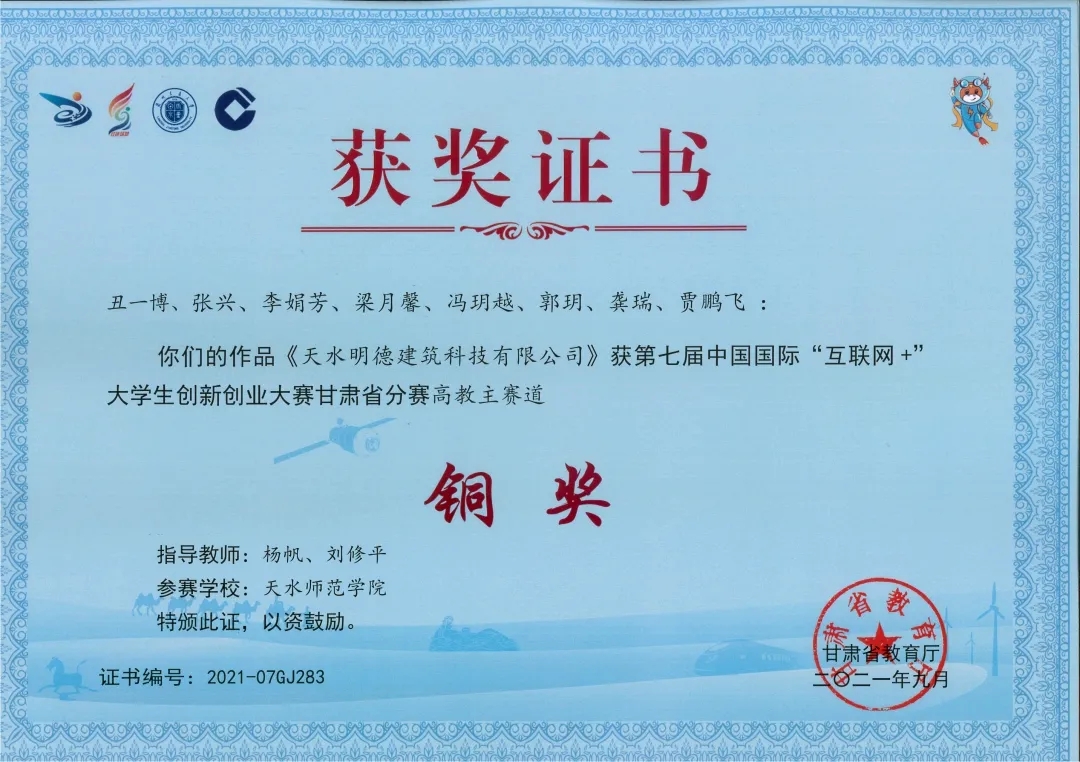 7月26日,以“我敢闯、我会创”为主题的“建行杯”第七届中国国际“互联网+”老员工创新创业大赛甘肃省分赛在兰州交通大学落幕,公司学子丑一博团队摘得铜奖,这也是继2020年12月8日首届甘肃省高校老员工就业创业大赛获奖以来,公司学子在该类型赛事上的再一次突破。