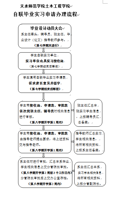 第七学期末由系主任牵头,辅导员、班主任、毕业设计(论文)指导教师参与,对员工召开一次毕业设计动员会,学习“伟德国际victor1946自联毕业实习管理办法”和“实习安全协议书”,并告知办理自联实习审批的程序及所需提供材料。