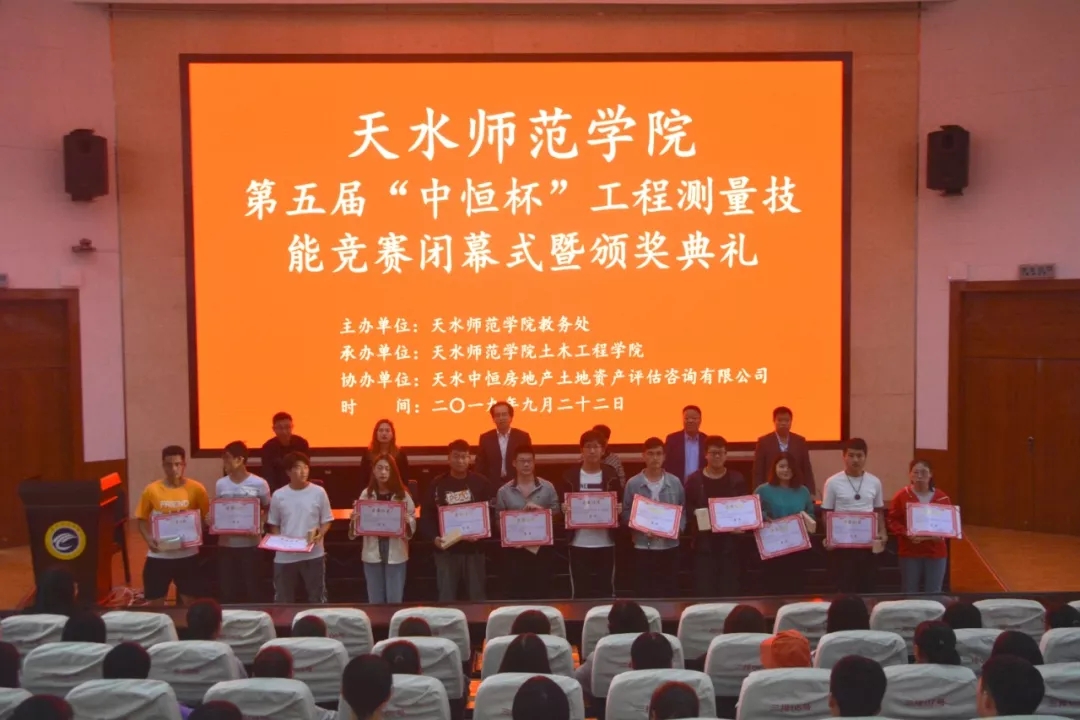 经过一天的紧张比赛,裁判组老师严肃、公正的评判,最终有26个队104名同学获奖,其中水准测量组一等奖1个队、二等奖2个队、三等奖3个队,优秀奖2个队;导线测量组一等奖3个队、二等奖5个队、三等奖8个队、优秀奖2个队。中恒机构市场部总监杨昕宣布导线组获奖名单,伟德国际victor1946副经理张自福宣布水准组获奖名单,公司领导及中恒集团的特邀人员为获奖选手颁发了荣誉证书和奖品。