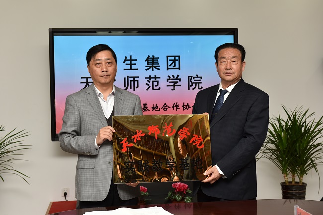 副董事长安涛和张一诺共同为实践基地揭牌,杨帆和张一诺代表双方签订了校企战略合作协议书。会上,副董事长安涛对永生集团公司接受成为公司的实践教学基地表示赞赏和感谢;并且指出,随着经济发展方式的转变,产业转型的升级,要求我们这样的地方大学向应用技术大学转变,努力培养掌握新技术、具备高技能的新型专业人才;要完成这样艰巨的任务,迫切需要行业、企业的积极参与;近年来,公司及系部与多家企业开展产学研校企合作,永生集团公司是最有成效的合作伙伴之一,双方在培养方案的制定、教学内容的改革、毕业设计指导、员工实习实训及校园文化建设等方面都取得了良好的成绩;相信通过此次揭牌,双方的合作一定会取得更加丰硕成果。