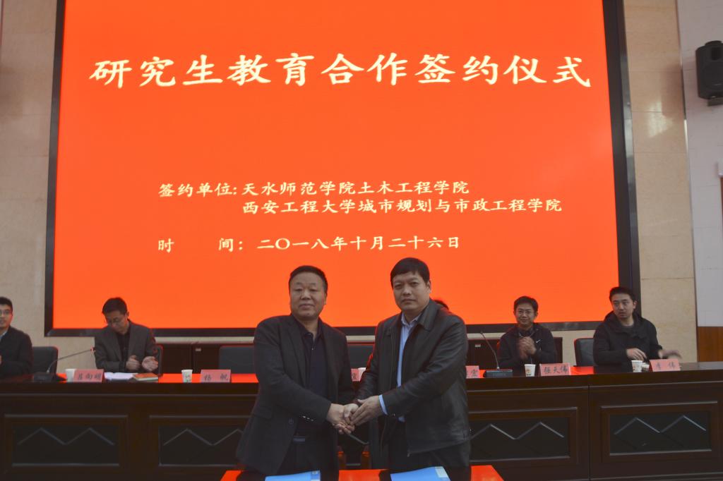 为了探索研究生教育工作,公司与高水平院校积极开展研究生教育合作。2018年10月26日,公司和西安工程大学城市规划与市政工程公司在二号报告厅举行了研究生教育合作签约仪式,出席此次签约仪式的有西安工程大学城市规划与市政工程公司党委书记杨友谊,副经理强天伟、研究生秘书李伟博士、教学秘书张红卫博士及公司直属党支部书记张建宏、经理杨帆、副经理吕向明,签约仪式由吕向明主持。