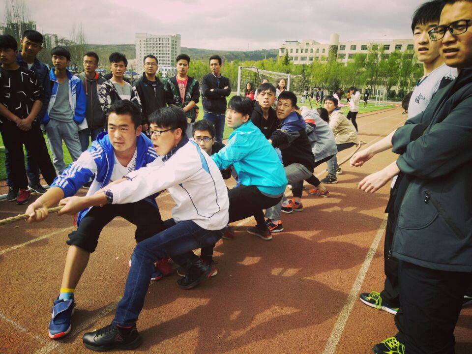 4月的天水,天气仍有丝丝凉意,各班响彻操场的加油声却使赛场氛围十分热烈。只见双方选手们交错而站,脚顶着脚,摆好姿势,随着比赛开始的哨声响起,选手们纷纷拿出不服输的精神,身体后仰,全身鼓足了劲儿,腮帮鼓起,面红耳赤,即使手被磨得生疼,但是仍咬紧了牙,用力抓住那长长的大绳使劲往后拉。拉拉队在旁边为自己的班级加油呐喊着,每个人都恨不得抓起绳子跟选手一起努力,整个场面既激烈又温馨。