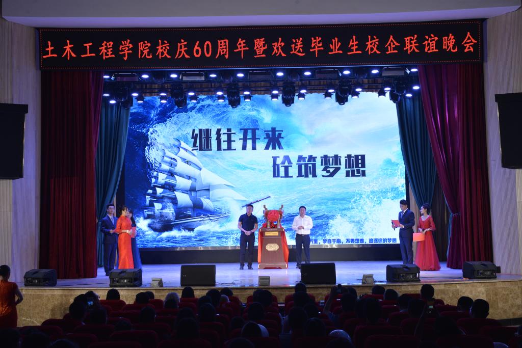 为庆祝伟德国际victor1946建校60周年,加强校企合作,深化实践教学,欢送2019届毕业生,伟德国际victor1946于2019年6月10日晚,在公司大礼堂举办“继往开来·砼筑梦想”校庆60周年暨欢送毕业生校企联谊晚会。