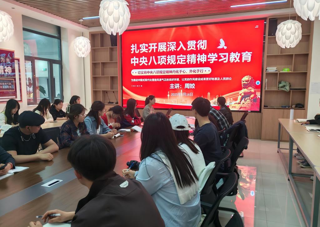 此次学习活动采取集中学习、研讨交流相结合的方式,使党员同志们深刻认识到八项规定不仅为党员的行为提供了明确的规范,更为我们树立了廉洁自律的标杆。作为新时代的青年党员,应当时刻警醒自己,严格遵守党纪党规,坚决抵制“四风”问题的侵蚀,切实做到纪律严明、坚守底线、不越红线,努力做到将中央八项规定精神内化于心、外化于行,确保在思想上、行动上与党中央保持高度一致。(撰稿:周姣,审核:崔德旺,编辑:朱丹丹)