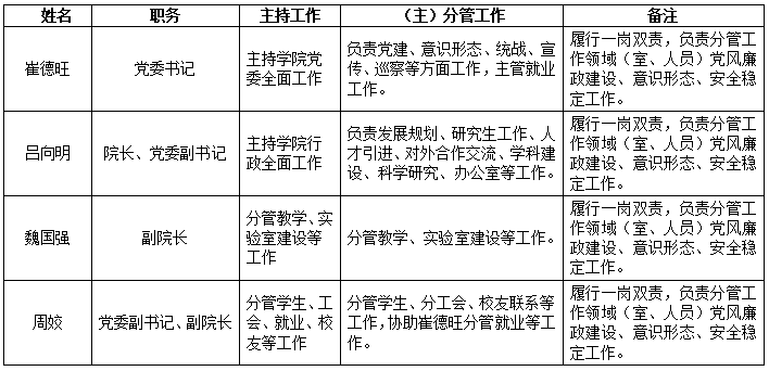 公司党委领导班子分工情况一览表