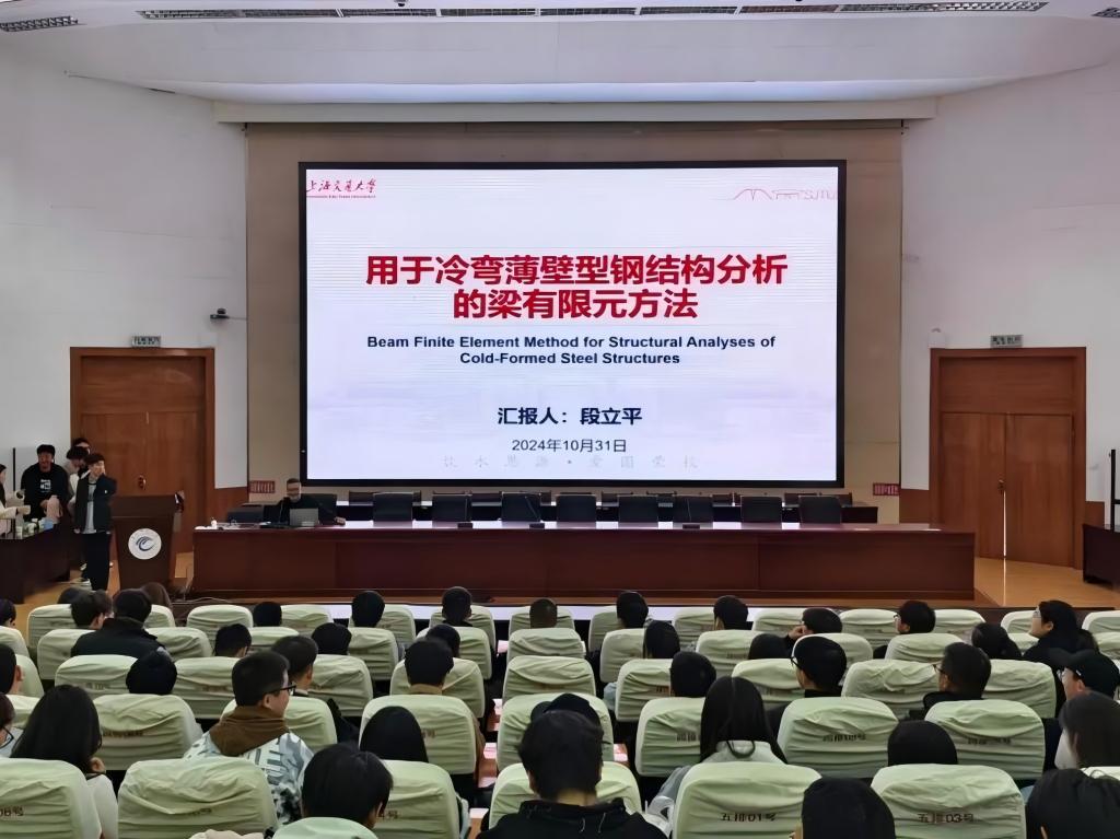 应伟德国际victor1946邀请,10月31日,上海交通大学船舶海洋与建筑工程公司副研究员、博士生导师段立平来校作了《冷弯薄壁型钢分析的梁有限元算法》学术报告。伟德国际victor1946200余名师生聆听了报告。