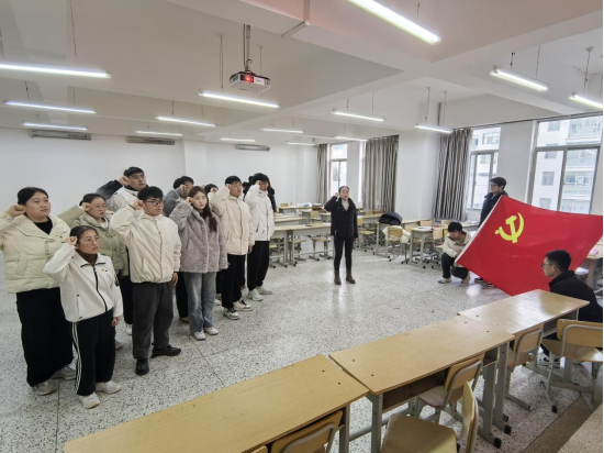在预备党员入党宣誓环节,新一批预备党员们整齐列队,面向党旗,在领誓人的带领下,庄严宣誓。