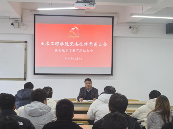 2024年12月5日,公司党委全体党员大会在四号教学楼326教室召开。此次大会聚焦党纪学习教育,旨在强化党员的纪律意识与党性修养,公司全体师生党员积极参与,会议由公司党委副书记张自福主持。