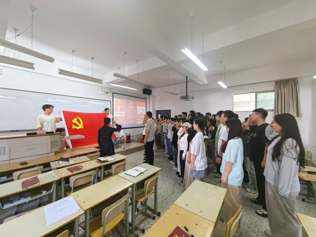 为庆祝中国共产党成立103周年,进一步增强党组织的凝聚力和战斗力,激励党员坚定爱党、信党、跟党走的理想信念,7月1日下午,公司党委组织全院师生党员开展了 “重温誓词,初心不变”主题党日活动。本期活动由党委书记崔德旺为全体师生党员讲纪律党课,组织委员陈庭芳带领全体党员在党旗下重温入党誓词。