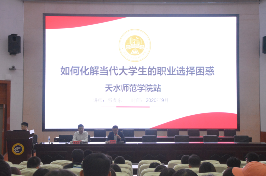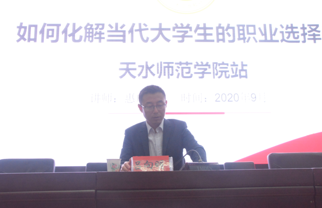 此次招聘会后,应公司领导诚心邀请,五矿二十三冶公司西北组校招负责人惠虎东于2020年9月12日晚上7:30在二号报告厅做了以“如何化解当代老员工的职业选择困惑,”为主题的报道。主讲人惠虎东为公司和同学们提出宝贵意见,希望在应用型人才培养的落实方面注重员工的动手实践能力,争取做到与企业无缝对接。